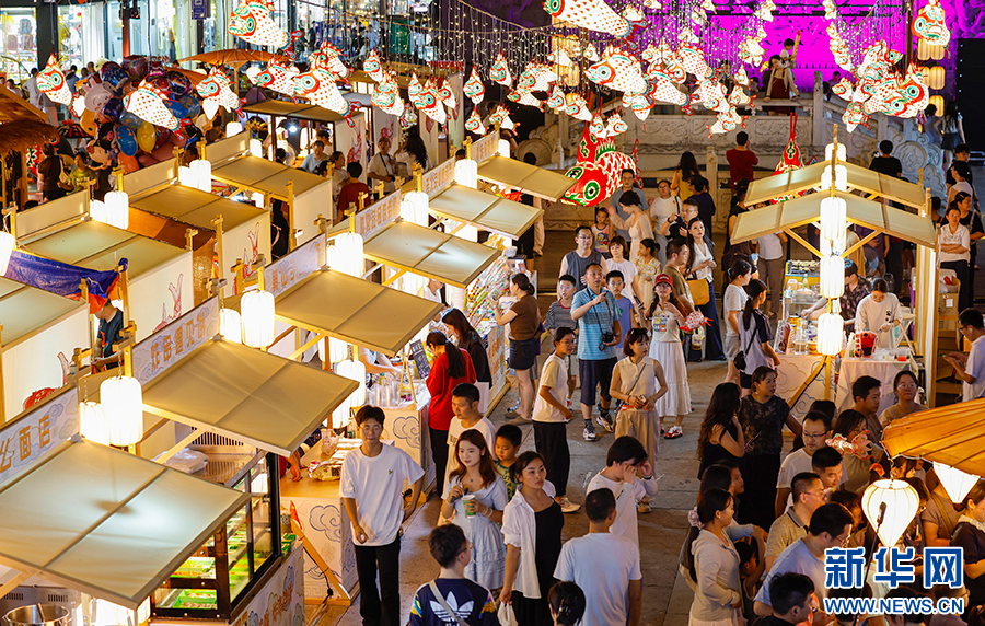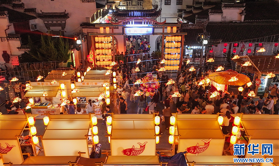 近年来,徽州古城以文化与旅游为驱动,打造多元化的夜间消费主题市集,激发消费潜能,持续释放“夜经济”活力。新华网发(施亚磊 摄)