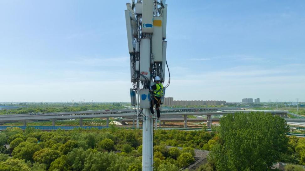 基站架设,让游人畅享5G-A网络“满格幸福”。