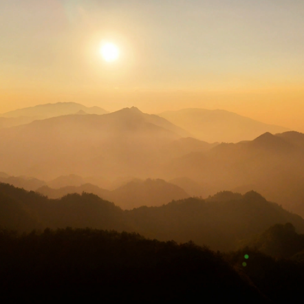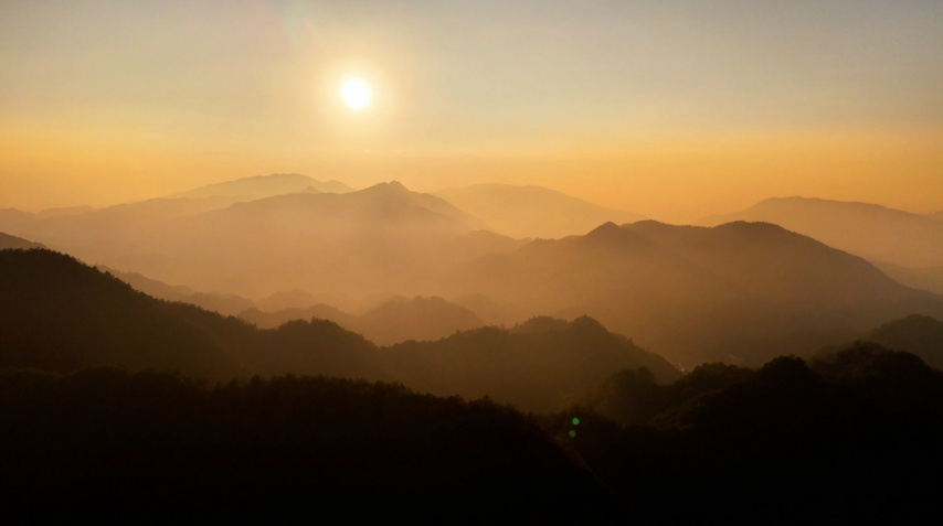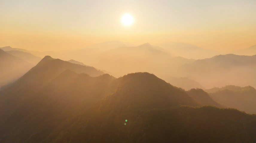 近日,在安徽省宣城市旌德县孙村镇,夕阳的余晖为连绵群山披上暖黄“轻纱”,如同一幅生动的水墨画。