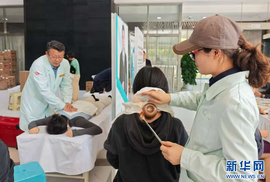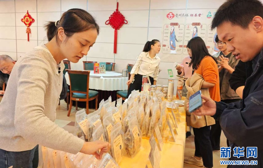 新华网合肥10月13日电(李东标)牛肉干、花茶、药妆、艾灸养生锤等特色产品琳琅满目;智能机器人通过扫描人体舌苔开展“AI问诊”;“非遗”铜火罐对症下罐,让患者气血通畅……10月13日,在新华社综合楼一楼大厅,一场亳州特色产品展销和中医药养生盛宴拉开帷幕,吸引了众多现场观众驻足购买和体验。