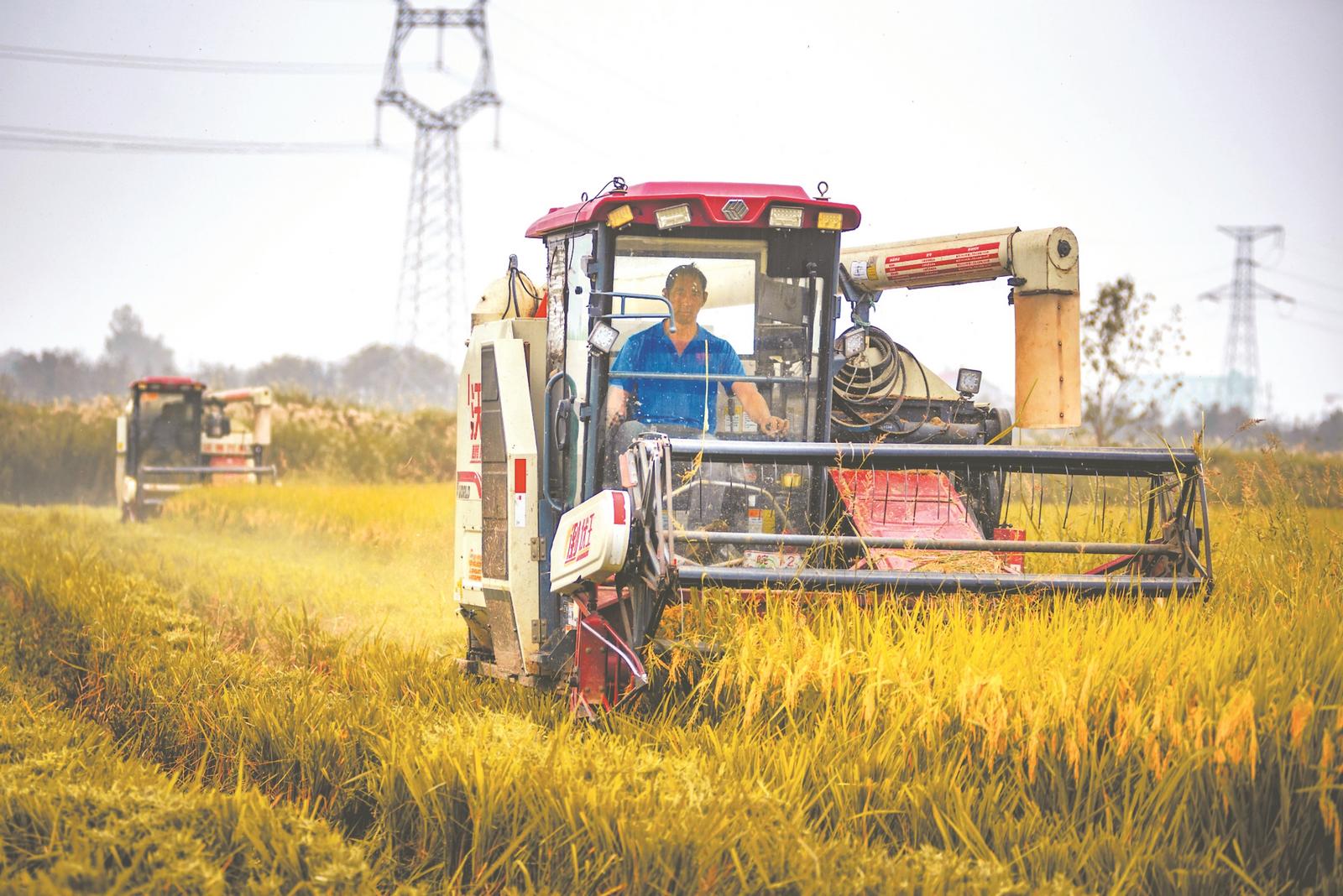 10月11日,来安县张山镇种粮大户在抢收水稻。记者 李邦军 通讯员 吕华 摄/视觉安徽