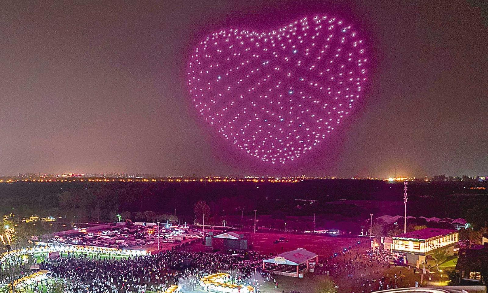 近日,合肥市包河区磨滩旅游度假区无人机表演。 通讯员 马二虎 摄