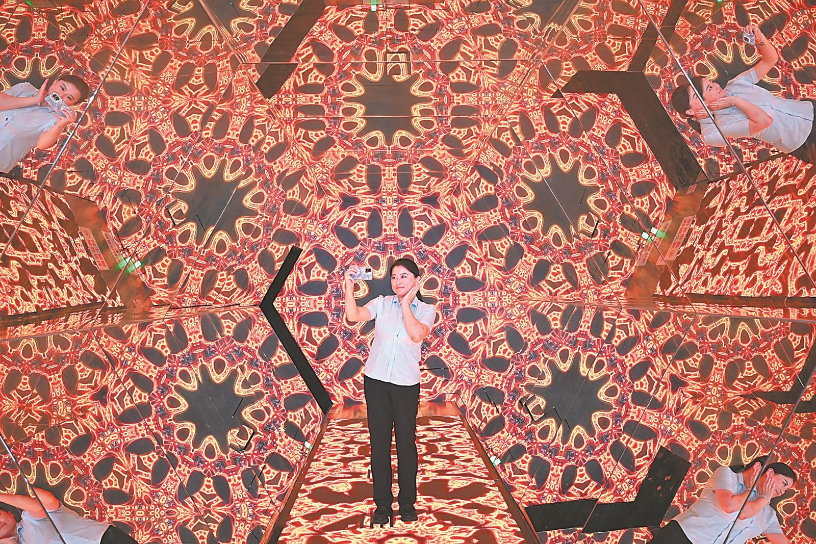 游客在安徽省科技馆新馆光影隧道拍照打卡。记者 张大岗 摄