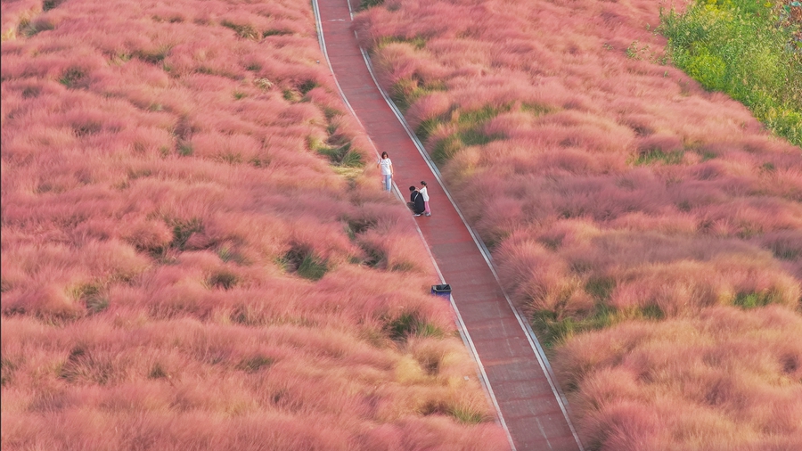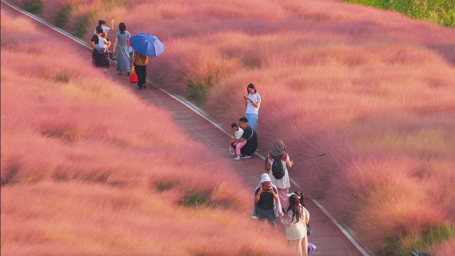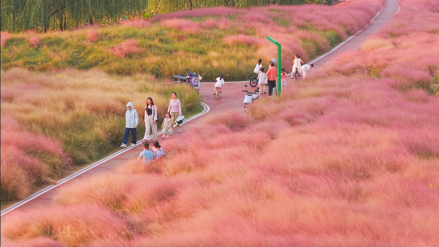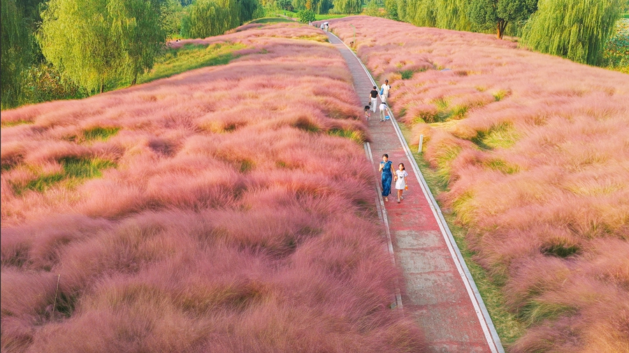 眼下,安徽省池州市平天湖国家湿地公园的粉黛乱子草正值最佳观赏期,如梦如幻的粉色“花海”吸引了众多游客前来观光打卡,陶醉其间,乐享美好时光。