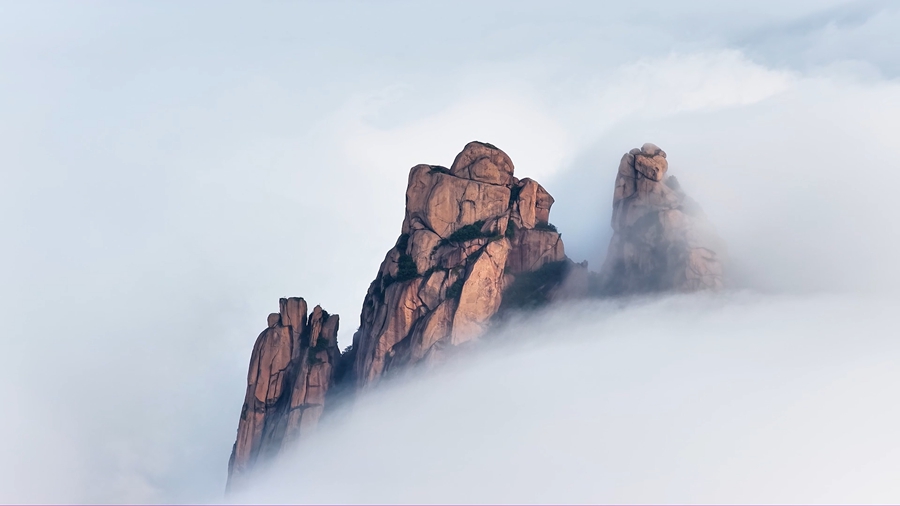 秋日时节,雨后的安徽九华山风景区,云雾似被舞动的白练,从山巅奔涌而下,时而云浪翻涌,时而轻拢成纱,藏青色峰尖在雾中时隐时现,构成了一幅流动的丹青画卷。(储成胜)