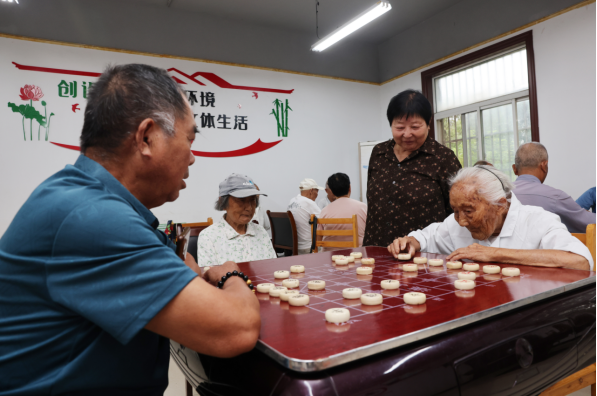 10月15日,走进铜陵市义安区天门镇金塔村老年人日间照料中心,老人们满面笑容,正在开展休闲娱乐活动。98岁的胡守兰正与老友对弈,清晰的棋路引得对手连连称赞,赢下对局后,她还能到操场上活动身体,等候营养可口的午餐。