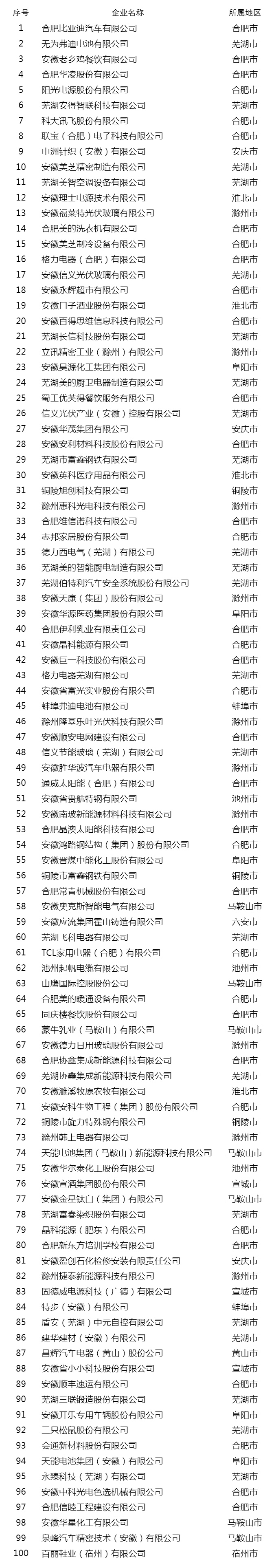2025安徽省民营企业吸纳就业百强名单