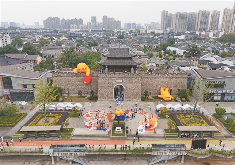 让历史遗存“活起来”,是比保留更重要的传承。2020年12月焕新归来的芜湖古城,接待游客数量逐年攀升,2024年达到980万人次,这样的热度正源于“古新共生”:古建筑的飞檐下正在举办油画展,传统院落和当代艺术碰撞出别样火花;街区中,皖南鱼龙大会的锣鼓声此起彼伏,孩子们围着非遗手作的展位转个不停;广场上,年轻人最爱的K-POP随机舞蹈、主题歌会轮番上演,一旁舞台上的梨簧戏又让老年朋友听得津津有味……古韵味和新文化的自然交融,给人以独特的沉浸式体验。