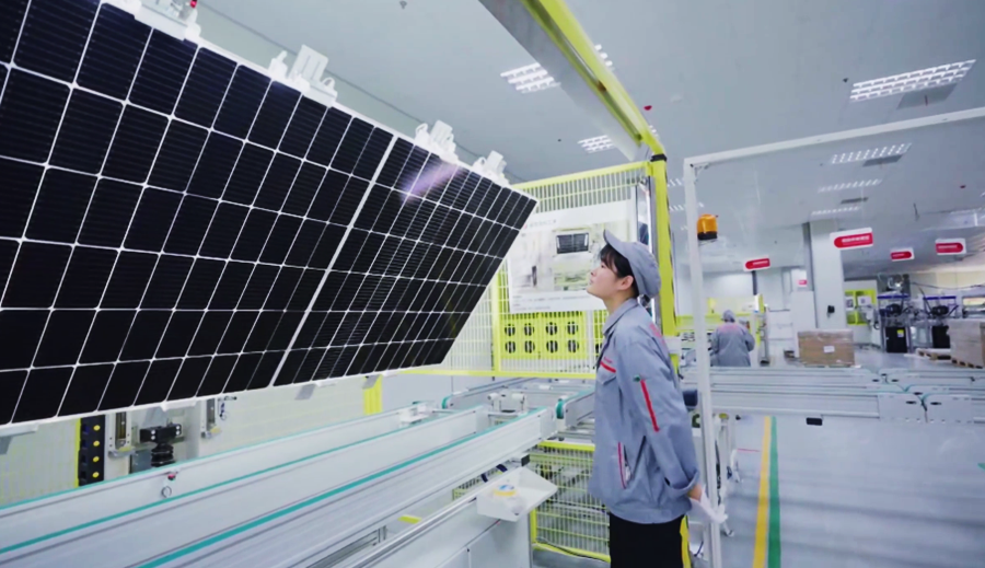近日,在安徽省颍上县新能源基地,随着风力发电机的转动,绿色电能并入地方电网,源源不断输送至千家万户。近年来,当地依托丰富的资源优势,推动新能源产业蓬勃发展,目前已汇聚50余家新能源优质企业,产业集群年产值突破200亿元,形成从材料到组件的完整产业链。(徐庆)