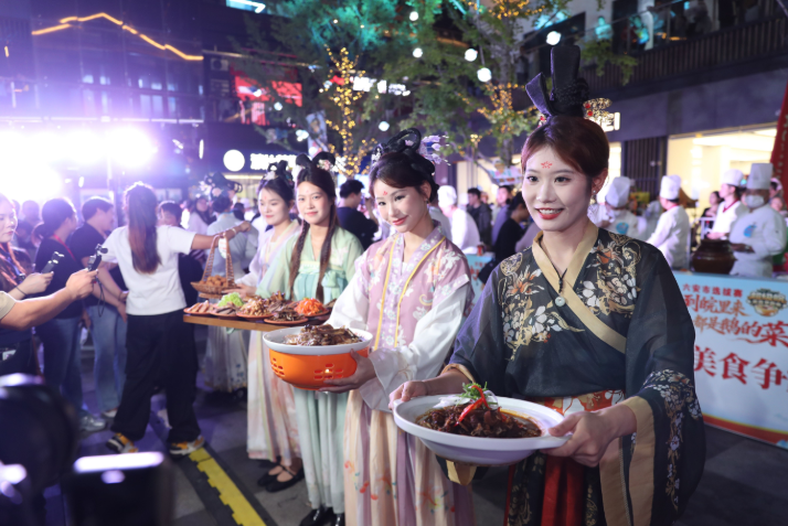 观众一边品着牛肉汤,一边听着摇滚乐;耳边回响的是《请灶王》《二龙戏蛛》等特色演出,鼻尖就飘来儒林宴、洪武宴的满城飘香。它提供的是一种“沉浸式”的欢乐体验,让每一个人都能在这里找到属于自己的乐趣。