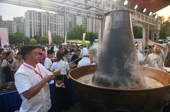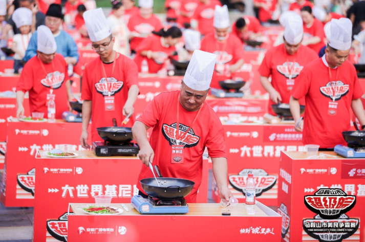 一提到“美食争霸赛”,很多人脑海中浮现的或许是白衣高帽的厨师正襟危坐、评委一丝不苟打分评点的场景。然而,“超级皖”却彻底打破了这一刻板印象——黄山脚下,新安江面浮起直径6米的发光“超级碗”,与徽派河街相映成趣;淮北赛场,“烫面小哥”顶着爆炸头假发高喊“吃烫面,先烫头”“烫不完根本烫不完”;淮南街头,2.6米宽的“楚王鼎”牛肉汤锅鼎沸千年,万人共品;蚌埠现场,千万粉丝达人与憨态可掬的机器狗趣味互动……没有高高在上的评判,只有万人空巷的欢腾。