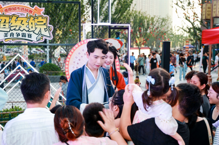 它“因地制宜”推送城市名帖。黄山站巧妙设置“徽州毛豆腐”“黄山烧饼”“黄山茶干”三大品类“封神榜”,优胜者被授予“味觉天尊”“香韵星君”“妙手真人”称号,披上古风战袍、手持奖杯,宛如武侠片中的“美食武林大会”。淮南不仅推出“地锅鸡对战大白鹅”等主题战,更复原楚王鼎制式打造巨型牛肉汤锅,以“燃鼎仪式”开启赛事,结合二十四节气美食问答转盘,邀请春申君“黄歇”与文旅IP“楚小南”与市民互动,送出“寿州有礼考古盲盒”。淮北则让八大战队脱下传统厨师服,换上定制潮流战袍,以“杜集‘食’力派”“杜集‘食’代团”等趣味队名拉满反差感,更设计“烫面爆炸头小哥”与巨型烫面精神堡垒,魔性吆喝“淮北烫面,不如见一面”,引爆全场笑点与话题。就连各地战队的口号—— “亳州药膳 ‘药’你好看”“实在阜阳 一吃就‘服’”……也自带“梗”感,轻松诙谐中激活了浓浓的地域认同与家乡情怀。