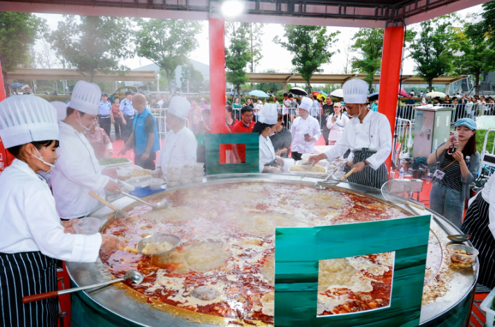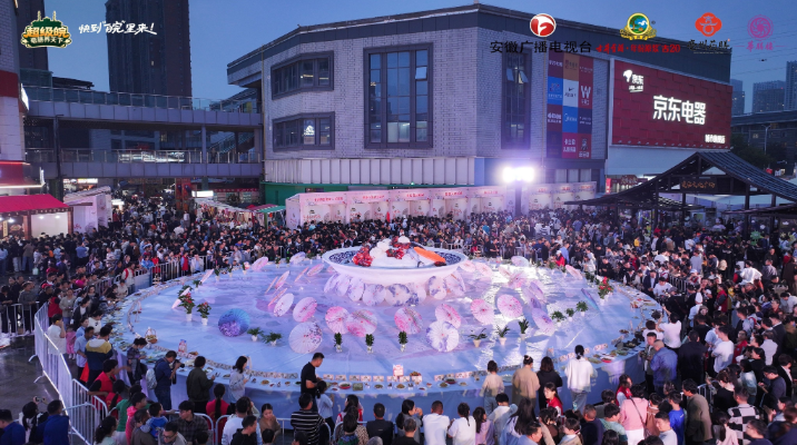 从线上投票、直播弹幕,到线下打卡、免费品尝,它构建了一个“可玩、可尝、可分享”的立体趣味场域,让传播不再是单向的推送,而成为全民参与的社交游戏。蚌埠集结十大龙虾品牌,打造“龙虾大咖汇”直播专区;亳州设置药膳体验区、AI智能诊疗区、非遗好物市集等多个互动板块,成为人气焦点;宿州则发起“sa汤VS羊肉汤 早午晚餐全面开战”的趣味议题,真正实现了“以梗引流、以趣破圈”;马鞍山发起“百人同烹辣椒炒茶干”,成功挑战了上海大世界基尼斯“最大规模地方美食现场制作”纪录。