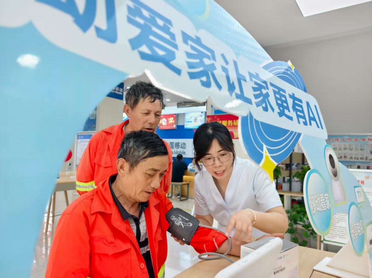 依托营业厅网点优势,安徽移动打造的工会驿站已成为县城里的“温情坐标”。夏季空调送凉、备足解渴饮水,冬季暖气融融、提供热水驱寒;微波炉、充电器、应急药箱等设施一应俱全,精准解决环卫工人、快递员等户外劳动者的“关键小事”。针对老年群体,驿站还推出特色服务:定期开展血压检测等健康关怀,开设“银发课堂”,手把手教老人使用智能手机、识别网络诈骗,助力跨越“数字鸿沟”。