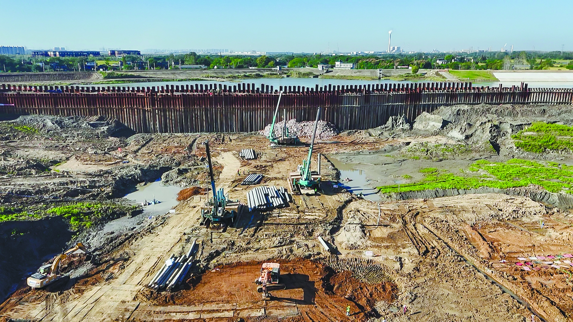 “当涂闸枢纽工程已完成一期钢板桩围堰的合龙,内侧戗台包括围堰内填土已满足现在的施工需求,后续将开展大面积基坑开挖并进入主体施工阶段。”据该工程施工现场负责人王聪聪介绍,目前,当涂闸枢纽工程导流墙与上闸首工程已进入基础施工关键阶段,项目团队正集中力量开展预应力管桩施工作业,为后续工序的顺畅衔接筑牢坚实基础。