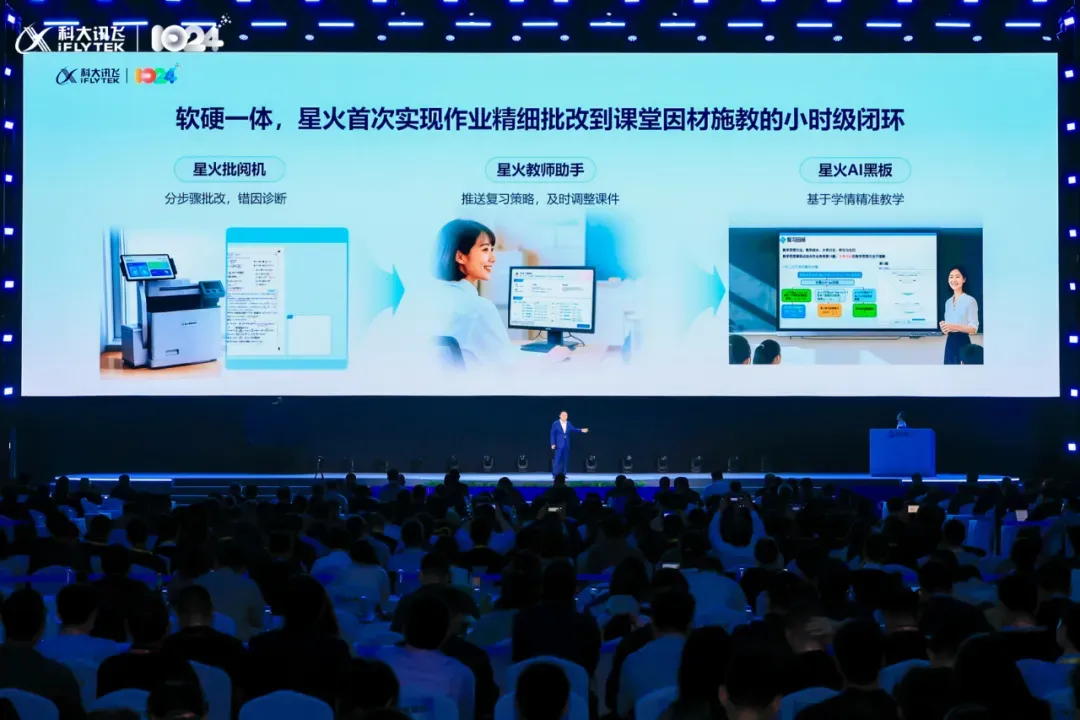 当AI真正“懂教育”时,它便不再是冰冷的技术工具,而成为有温度的教育伙伴。星火大模型跨越了三个认知台阶:首先建立覆盖3大类、3层级、4000+标签的错因分析体系,获得数学课程标准制定组的权威认证;其次通过智能批阅机实现分步骤批改和错因诊断,配合教师助手生成针对性策略,形成小时级教学改进闭环;最终在AI黑板等载体上构建起师-生-机三元互动的新型课堂,让数形结合等抽象概念变得直观可感。