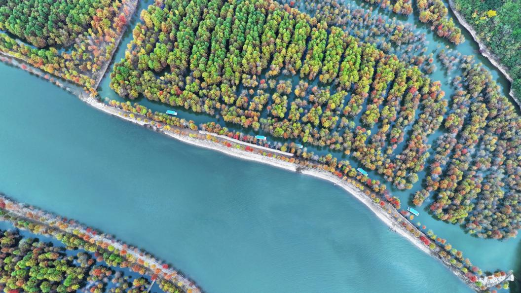 “这片红杉林是20多年前为红豆杉遮阴而种,如今成了‘皖南喀纳斯’。”宁国市落羽红杉林旅游发展有限公司负责人介绍,目前景区已将竹筏升级为电驱动,既保留了泛舟赏景的惬意,又守护了青龙湖的碧水蓝天,让游客能近距离感受生态之美。