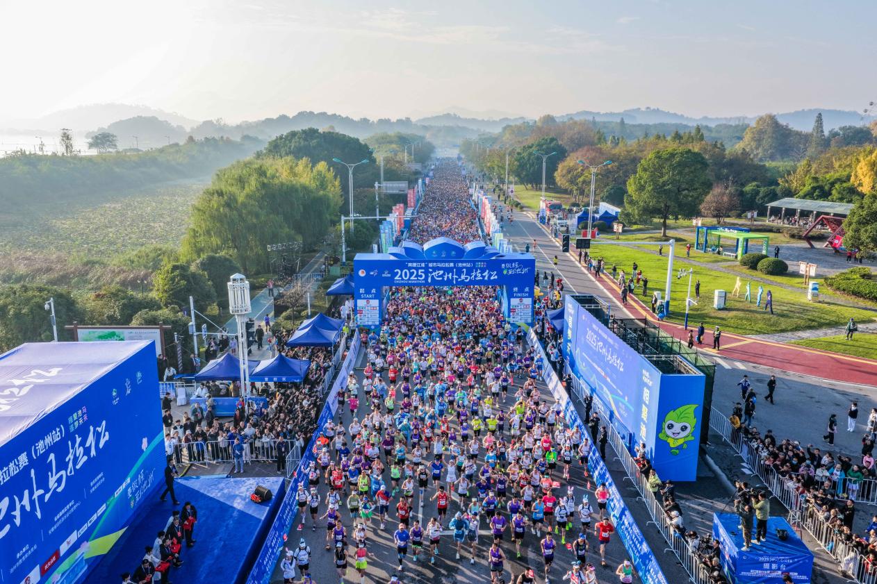 11月16日,“奔跑江淮”城市马拉松赛(池州站)2025池州马拉松在平天湖莲花台广场鸣枪开跑。