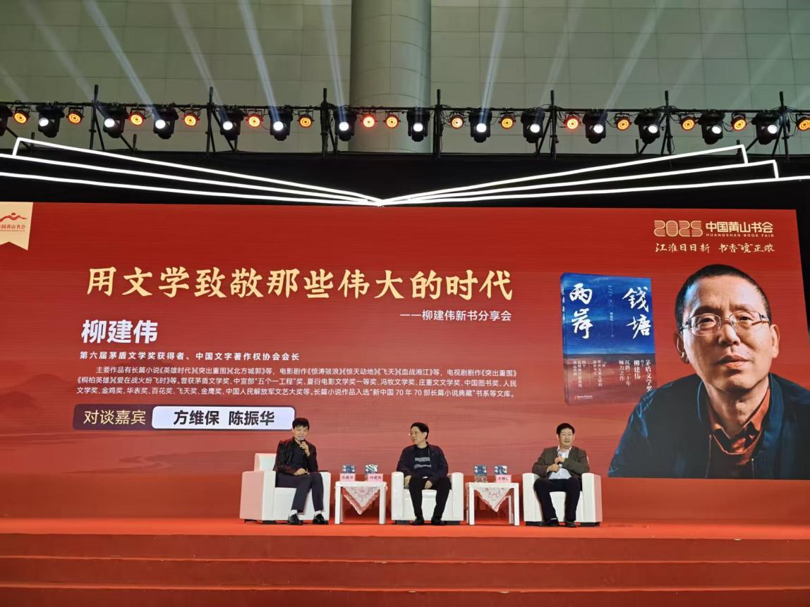 11月16日,著名作家柳建伟新书分享会在2025中国黄山书会现场举行。活动以“用文学致敬那些伟大的时代”为主题,茅盾文学奖得主、作家柳建伟现场分享新书《钱塘两岸》的创作初衷与心路历程,并与安徽师范大学方维保教授、巢湖学院陈振华教授展开分享对谈。