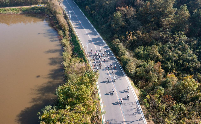 这条48公里长的赛道,成为本次赛事的一大亮点。赛道主体贯穿“紫蓬山旅游风景道”,将江淮大地的自然灵秀与人文厚重完美串联。骑手们在疾驰中尽览“江淮分水”的生态之美与“花木之乡”的田园风情;穿过市镇区域时,途遇著名的肥西圩堡群落,“祈福胜地”“淮军故里”等历史文化地标串联其间,让选手在竞技之余阅读过往历史。骑手们风驰电掣、奋勇争先,上演了一幕幕精彩绝伦的竞速对决。