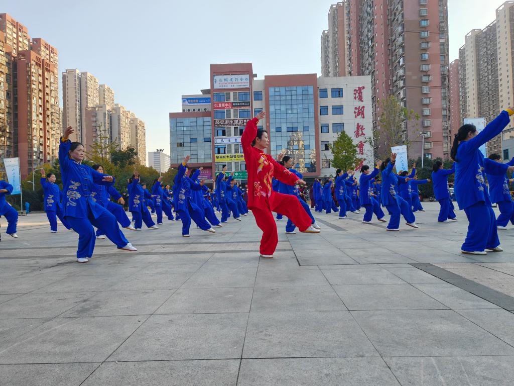 合肥市包河区烟墩街道顺园社区,晨练的市民们在打太极