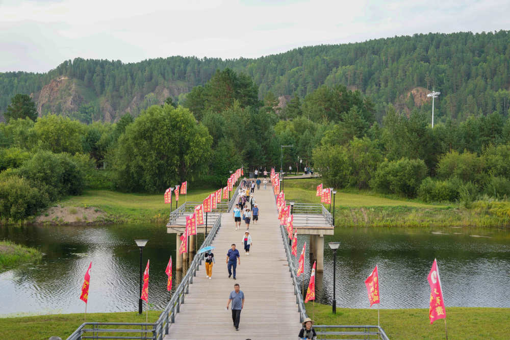 图为8月7日,游客在漠河市北极村游玩、拍照。(新华社记者王建威 摄)