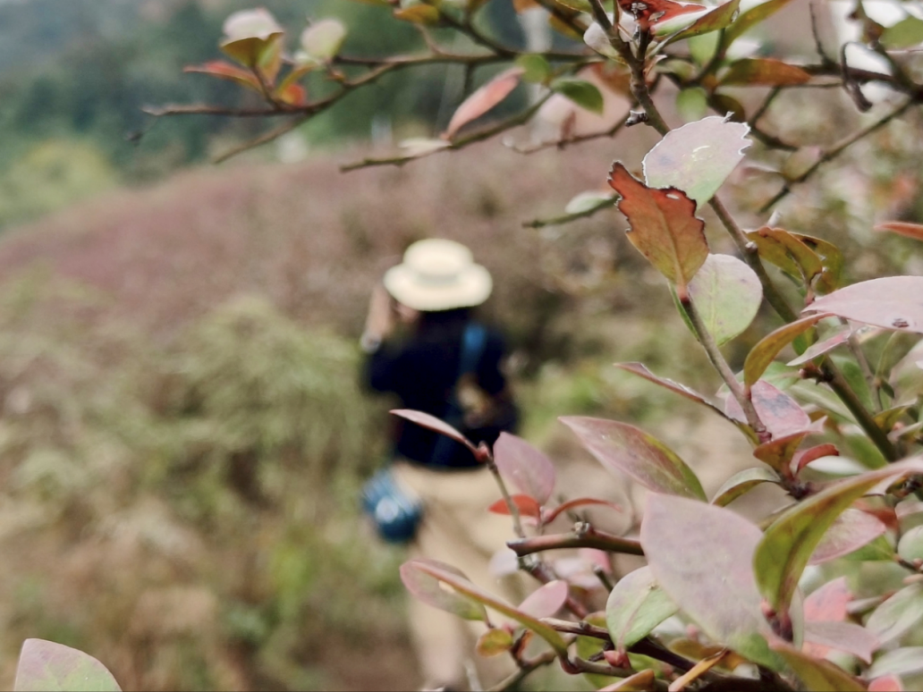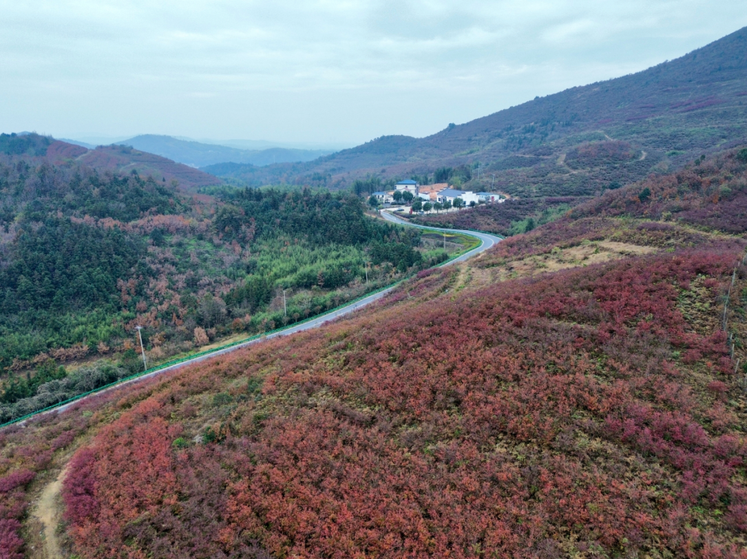 初冬时节,漫山遍野的蓝莓树叶片由绿转红,或嫣红似火,或橙黄如霞,在暖阳下交织成一幅色彩斑斓的生态画卷。
