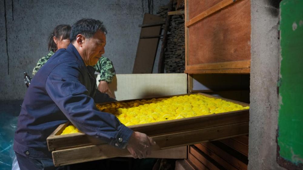 为破解技术难题,工作队请来农业专家扎根田间,从选种育苗、水肥管理到病虫害绿色防治,手把手给村民传经送宝。同时,积极争取资金,升级菊园灌溉管网,引进小型烘干设备,提升菊花晾晒效率和品质。工作队的精准帮扶,让菊园的“颜值”稳稳转化成了乡村增收的“价值”。