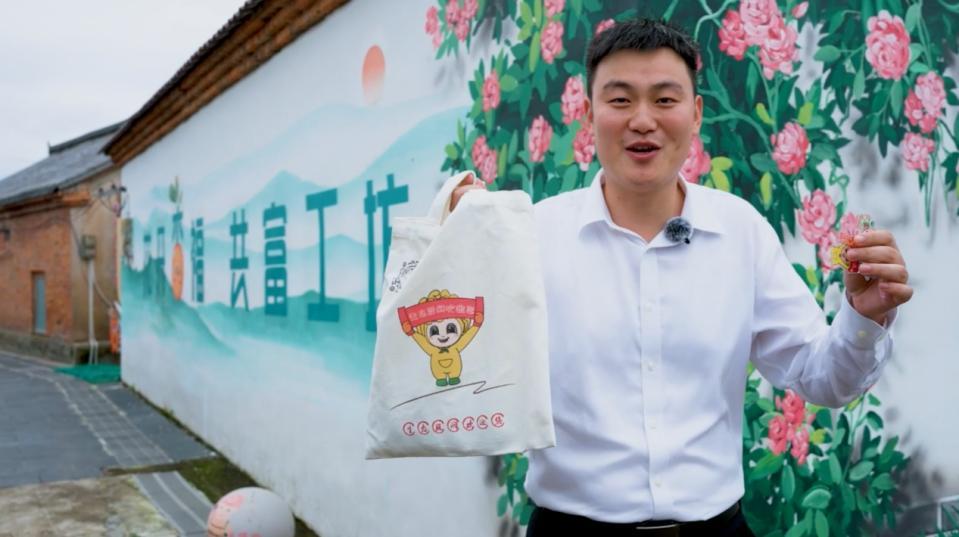 “大家好,我是殷涧镇镇长王世义。今天带大家逛逛咱们殷涧镇的卸店村……”王世义面带微笑站在镜头前,手持文创钥匙扣和帆布包向网友展示。“这是我们‘花开杏福’共富工坊结合卸店文化,打造的IP形象——‘殷小菊’和‘小杏福’。”这些可爱的形象,正是当地传统文化与现代创意碰撞的结晶。