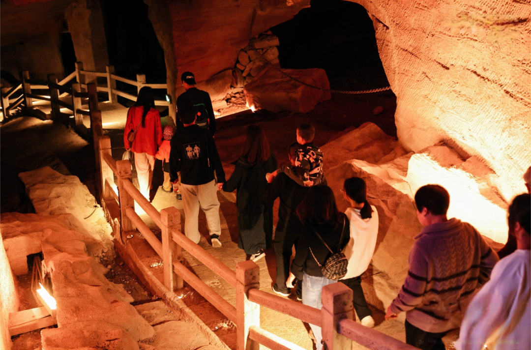 花山谜窟的“千年地宫”恒温15℃,常年如春日般温暖静谧。洞内的光影在岩壁上流转不停,映照着千年前的人类痕迹,一个个未解之谜在脑海里不断浮现,这种独特的“反季节”体验,只有亲身经历才能了解。