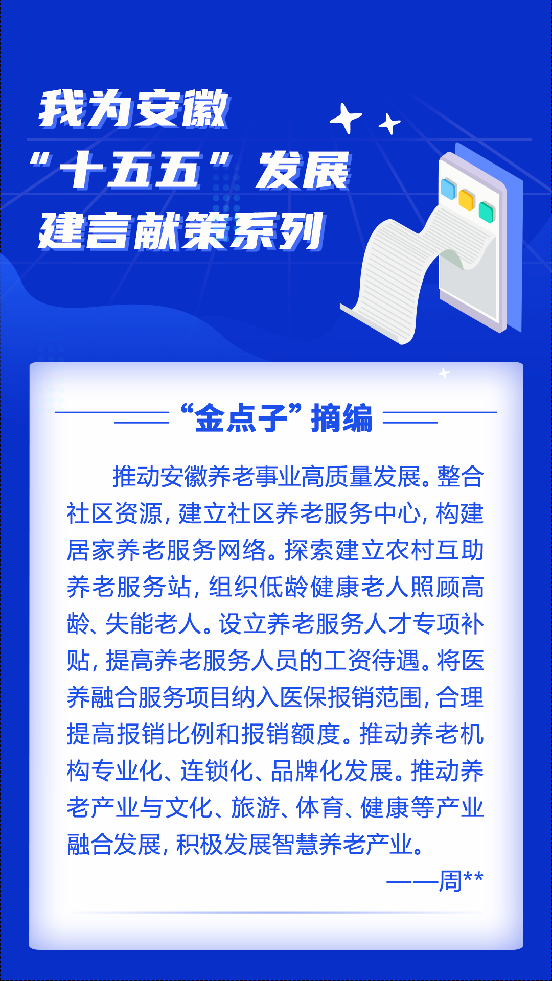 自活动开展以来,已征集到一大批聚焦安徽发展的“金点子”。这些建言既有对就业、医疗、教育、养老、托育、出行、住房、体育等民生关切的务实之策,也有围绕科技创新、产业发展、改革开放、绿色转型、区域融合等“大事要事”的深远思考。