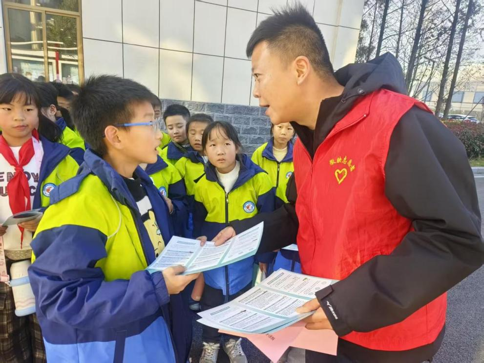 普法宣传志愿者涂宸一边发放宣传册,一边记录孩子们的问题。“他们的好奇和热情让我们很感动。”他说,“普法不是单向灌输,而是双向互动。只有贴近他们的生活,法律才能真正被理解和接受。”