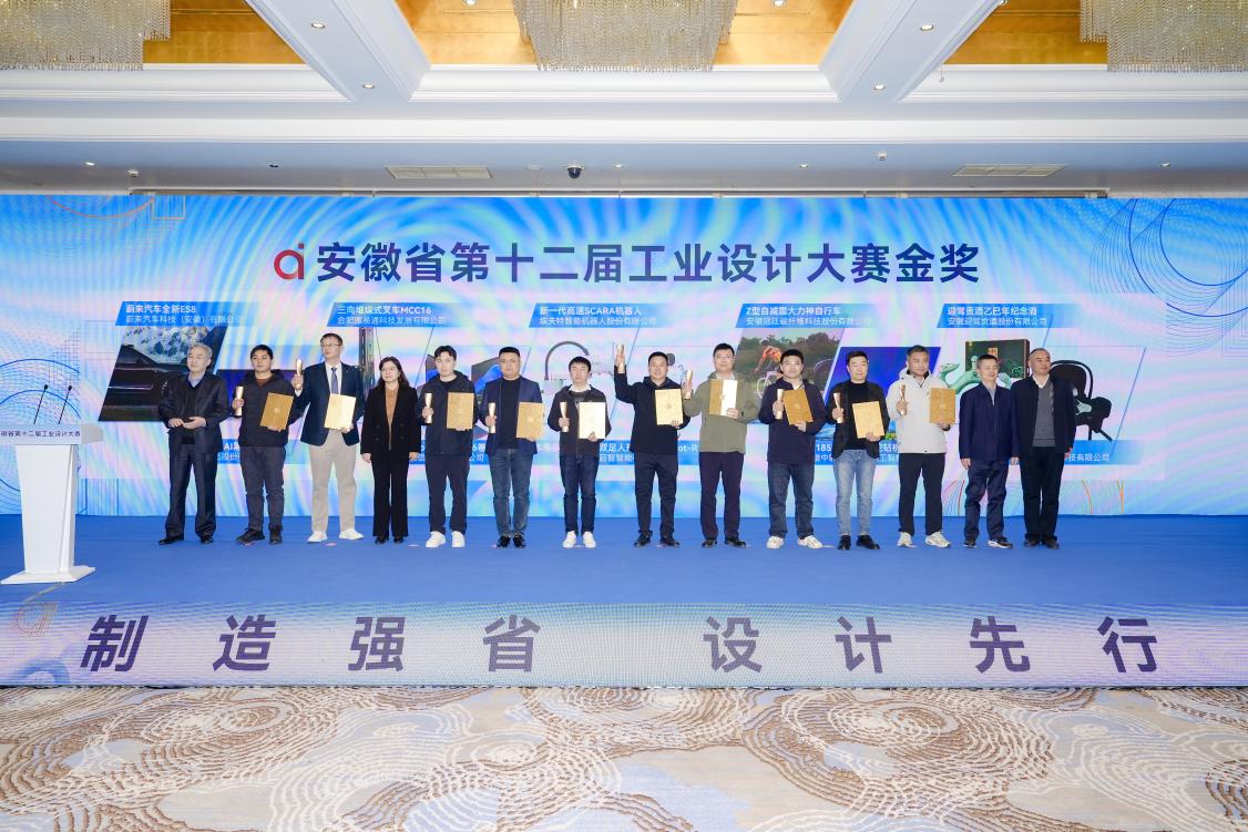 大会先后颁发了安徽省第十二届工业设计大赛“优秀主办单位奖”和“金奖”。获奖作品涵盖汽车制造、智能装备、电子科技、家居生活等多个领域,兼具创新性与产业实用性。
