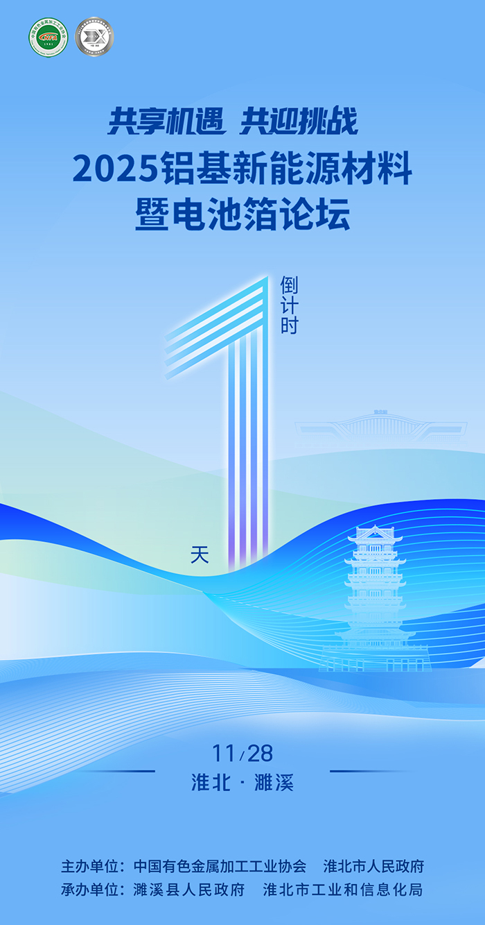由中国有色金属加工工业协会与淮北市人民政府主办,濉溪县人民政府、淮北市工业和信息化局承办的2025铝基新能源材料暨电池箔论坛将于2025年11月28日在安徽省淮北市举办。与会专家学者将围绕铝基新能源材料、电池箔产业政策、技术与应用等话题共商发展、共话合作、共谋未来,推动铝基新能源材料和电池箔产业高质量发展。