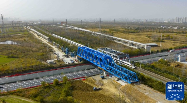 11月27日,经过连续四天的施工,由中铁四局承建的沪宁合合肥枢纽还建合宁左线跨合巢芜高速立交特大桥钢桁梁拖拉施工顺利完成。该项目位于合肥市肥东县境内,还建合宁左线、右线跨合巢芜高速立交特大桥全长3530米,为单线桥梁,设计时速250公里,分为左线和右线上跨合巢芜高速,是全线的控制性关键节点工程。