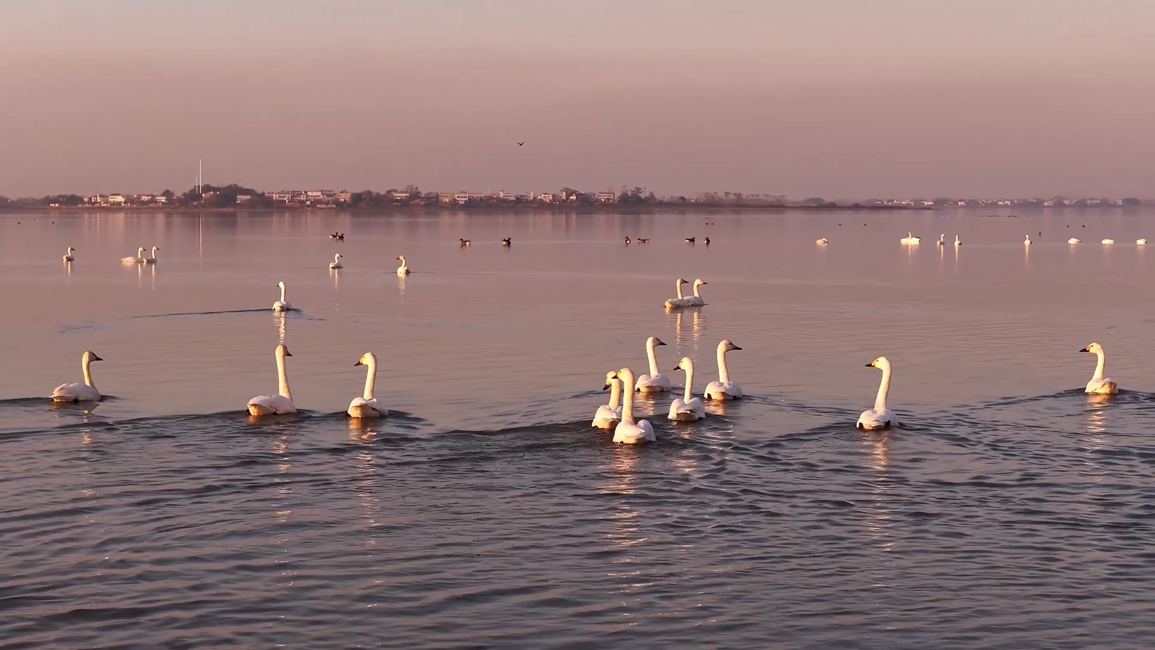 安徽池州:天鹅舞动 生态画卷