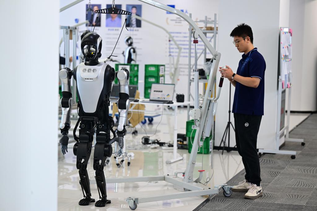 10月24日,在合肥乐聚机器人技术有限公司,工程师在实验室内调试机器人。新华社记者 周牧 摄