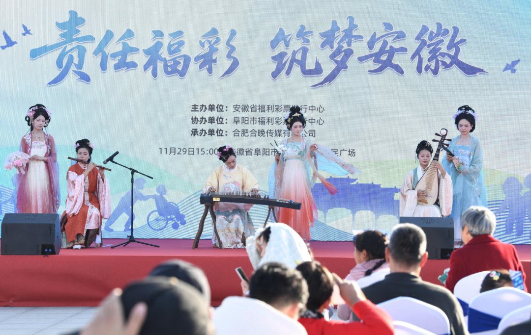 11月29日,由安徽省福利彩票发行中心主办的“责任福彩 筑梦安徽”责任彩票宣传活动在阜阳市民广场温情启幕。