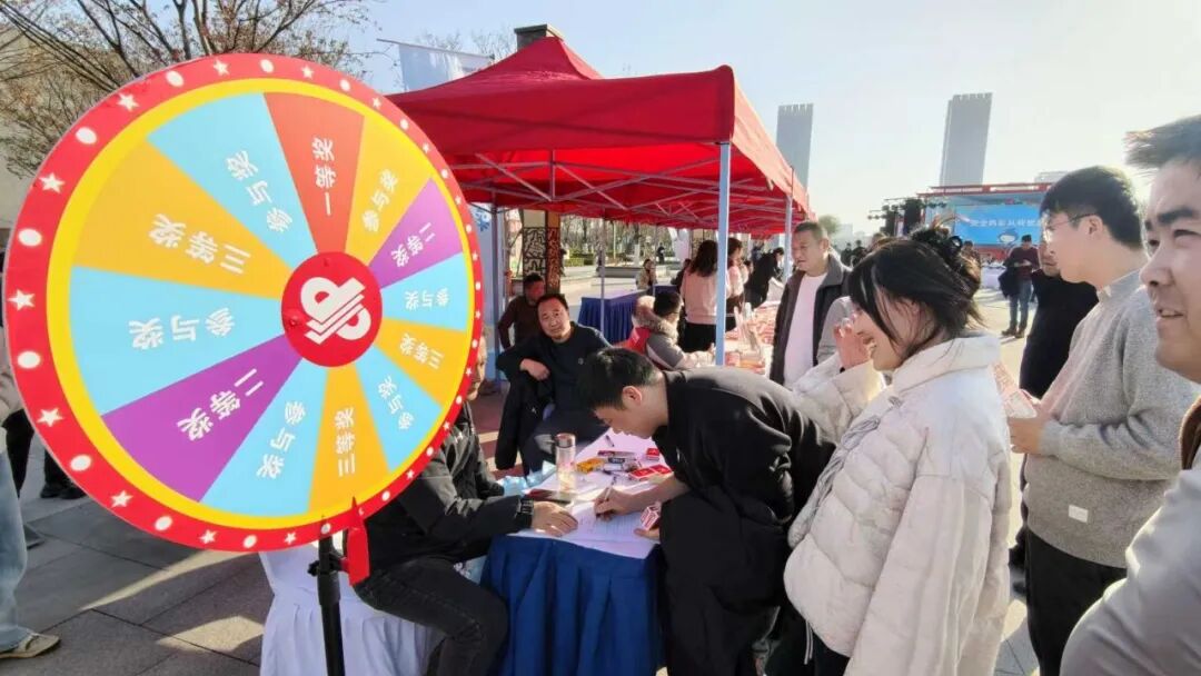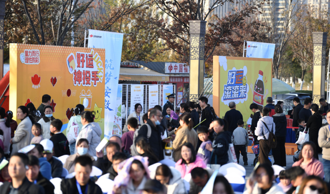 广场周边,“好运滚滚来”等互动游戏区前排起了长队,男女老少摩肩接踵,欢声笑语洒满每个角落。