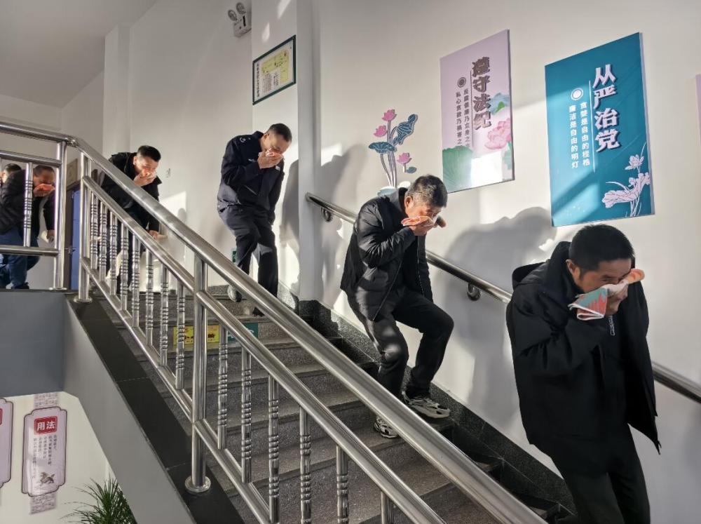 “办公楼发生火情,立即启动消防应急预案!”随着指挥员一声令下,东至县烟草专卖局组织的消防应急演练迅速启动,参演人员反应迅速,用湿毛巾捂住口鼻,沿着指定疏散路线,低姿、快速、有序地撤离至安全地带,提升员工应急处置实战能力。
