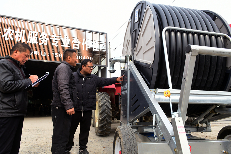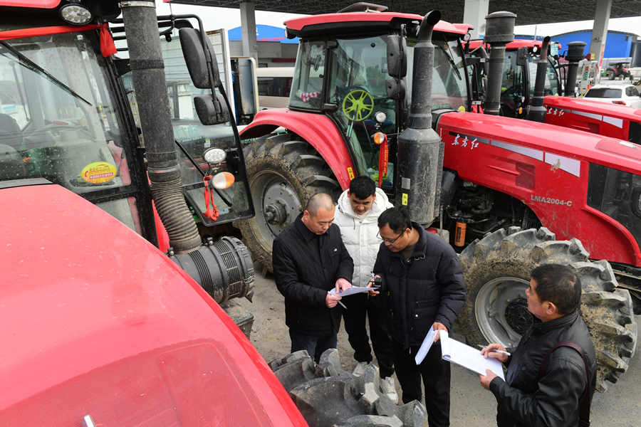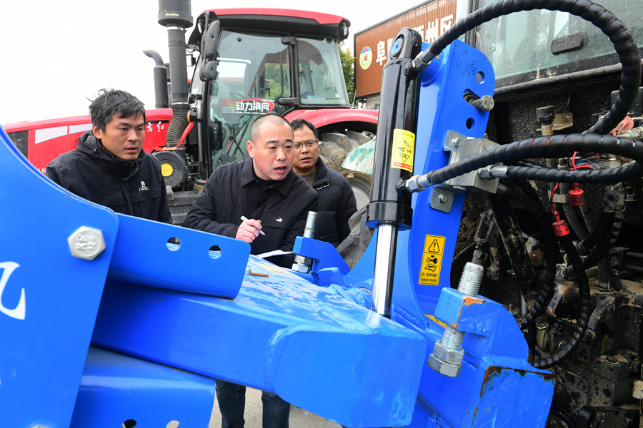12月2日,阜阳市颍州区农机发展中心的工作人员在为农机户核验农机具。