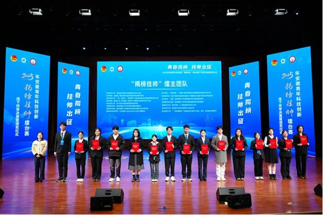 近日,2025年安徽青年科技创新“揭榜挂帅”擂台赛线下终审复赛暨颁奖仪式在安徽交通职业技术学院举行。淮北师范大学4支队伍入围复赛,荣获3项擂主、1项二等奖。