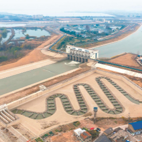 枞阳引江枢纽是引江济淮菜子湖线渠首引江枢纽,建设的入江和入湖双向鱼道是长江首个“双通道”鱼道,用以保障鱼类在长江和菜子湖之间洄游。
