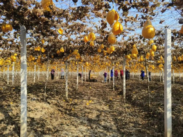 冬日时节,山后村瓜蒌基地的180亩瓜蒌藤蔓下吊着沉甸甸的“黄金果”,村民们忙着采摘、分拣、装运瓜蒌。这个曾经产业单一、增收乏力的传统农业村,仅用了一年时间,就凭借小小的瓜蒌,实现了村集体经济的华丽转身。
