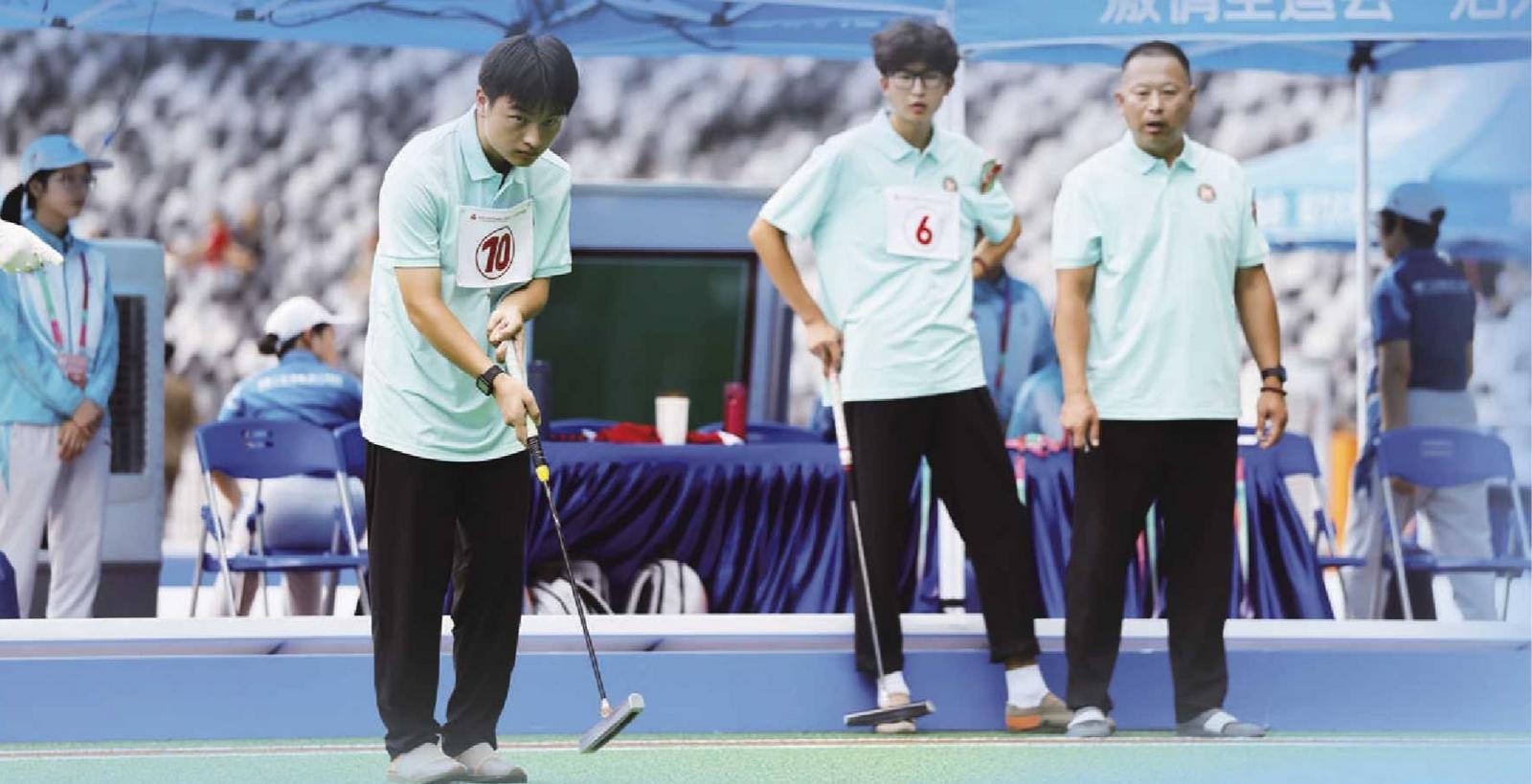 门球混合制五人制C组比赛,由刘奥运、汪波、朱浩、王可欣、胡斯斯组成的安徽队获得金牌。这是一支来自农村的队伍,其中3名运动员来自太湖县弥陀小学,充分展现了素质教育与体教融合发展成果。