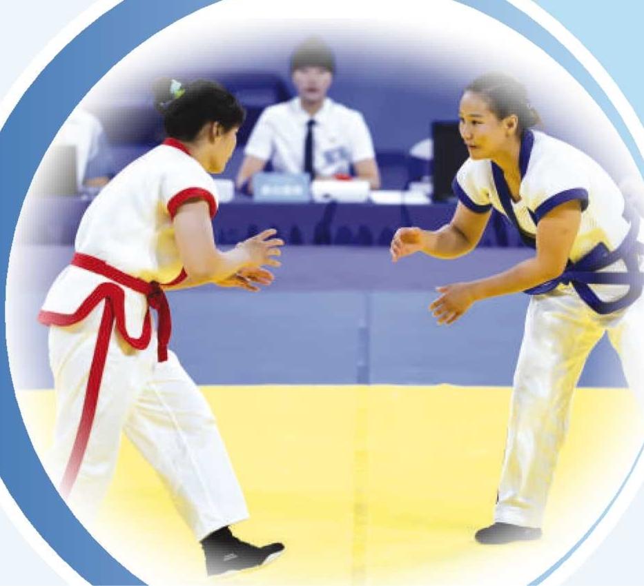 余欢欢(右)获得中国式摔跤女子56公斤级金牌。