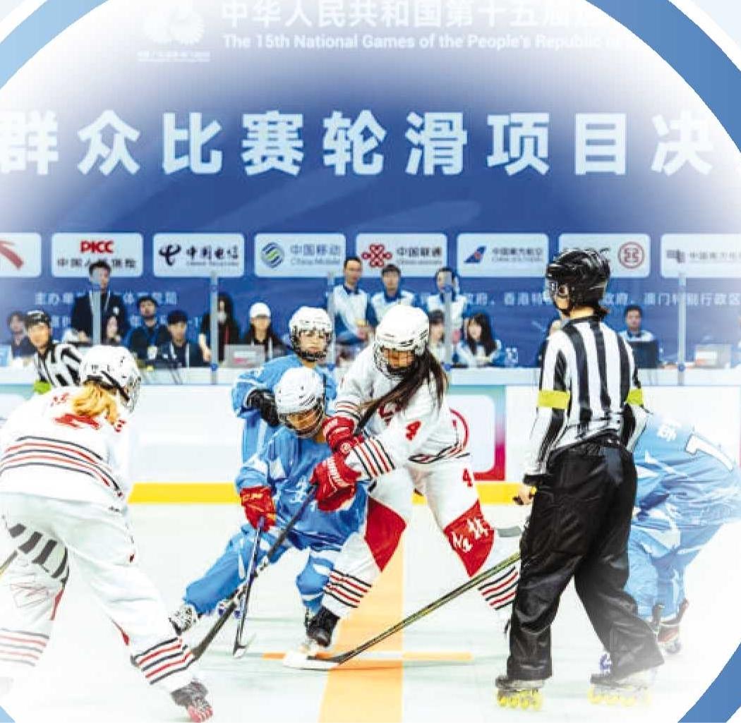 安徽队(蓝衣)获得女子轮滑球银牌。
