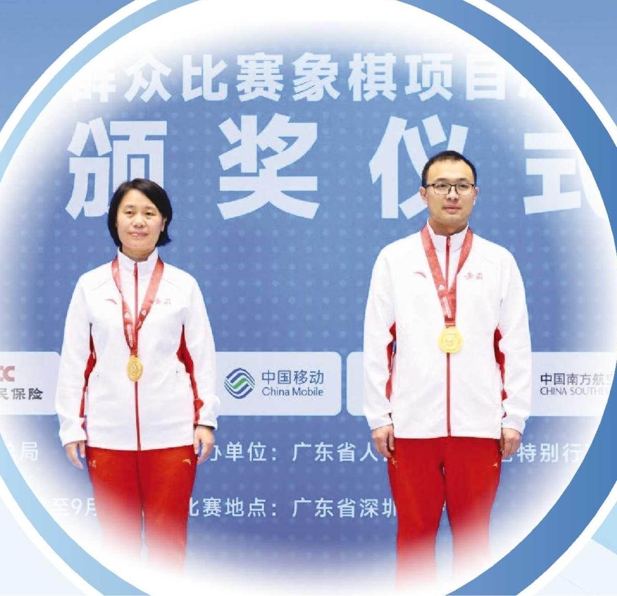 马维维(右)获得象棋男子个人业余组金牌。