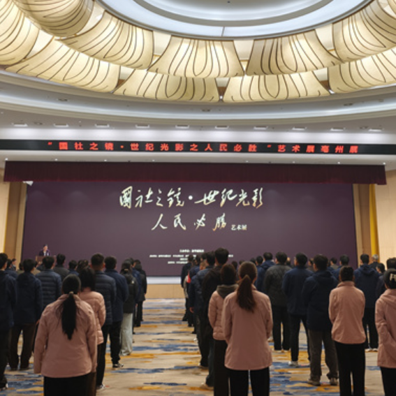 12月16日,“国社之镜·世纪光影之人民必胜”艺术展亳州展在古井集团启幕。新华网发(廖宇翔 摄)