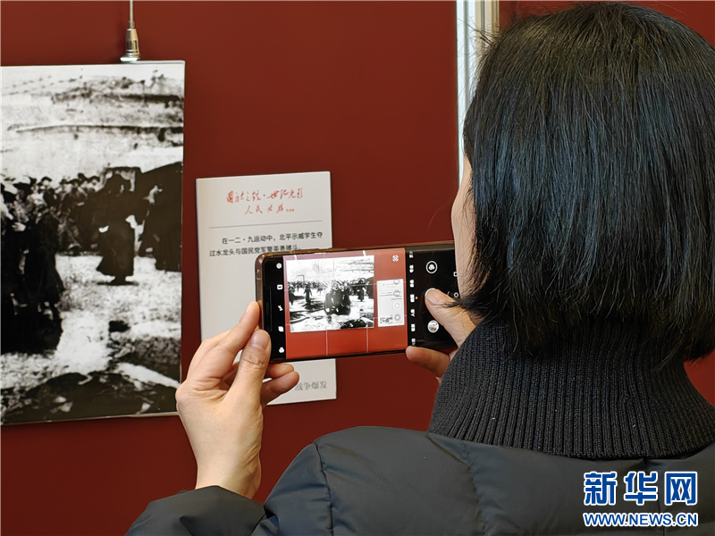 12月16日,一位观众在艺术展照片前拍照。新华网发(廖宇翔 摄)